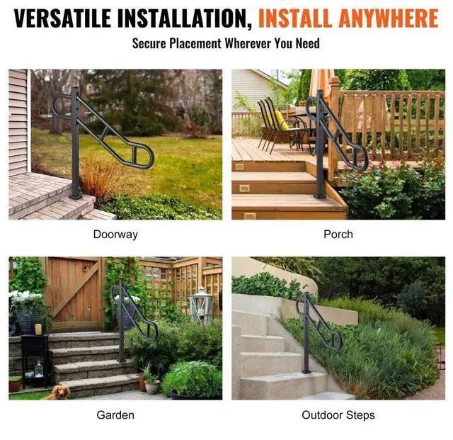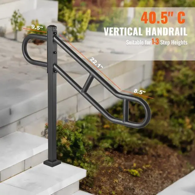 VEVOR Single Post Handrail for Outdoor 1-3 Step 40.5" Stair Handrail Floor Mount
