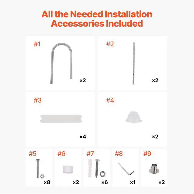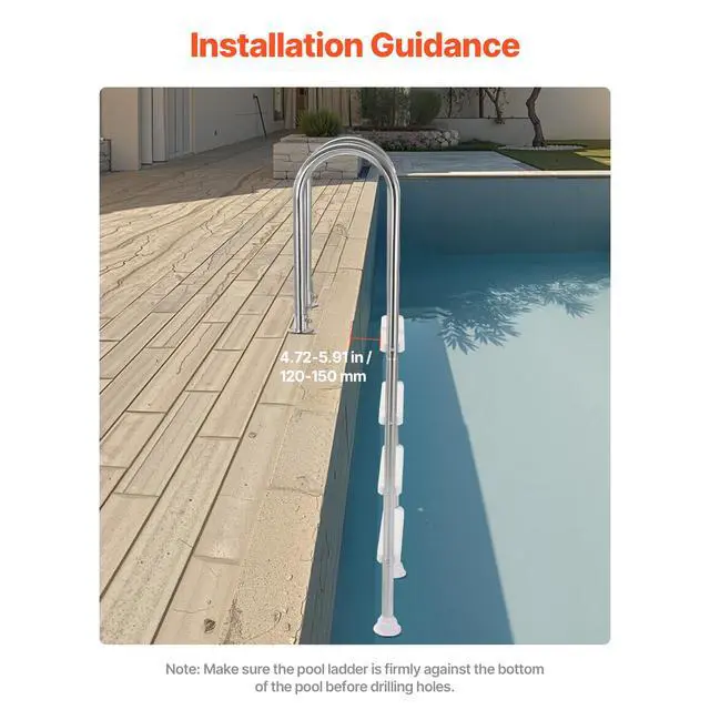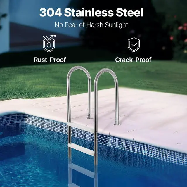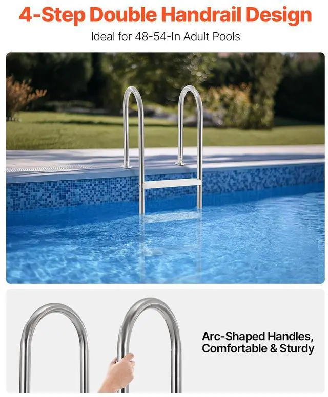 Stainless Steel Pool Ladder 4-Step 2 Handrail Loads 265 lb for 54 In Decked Pool