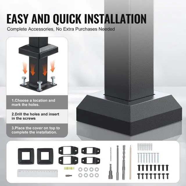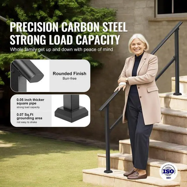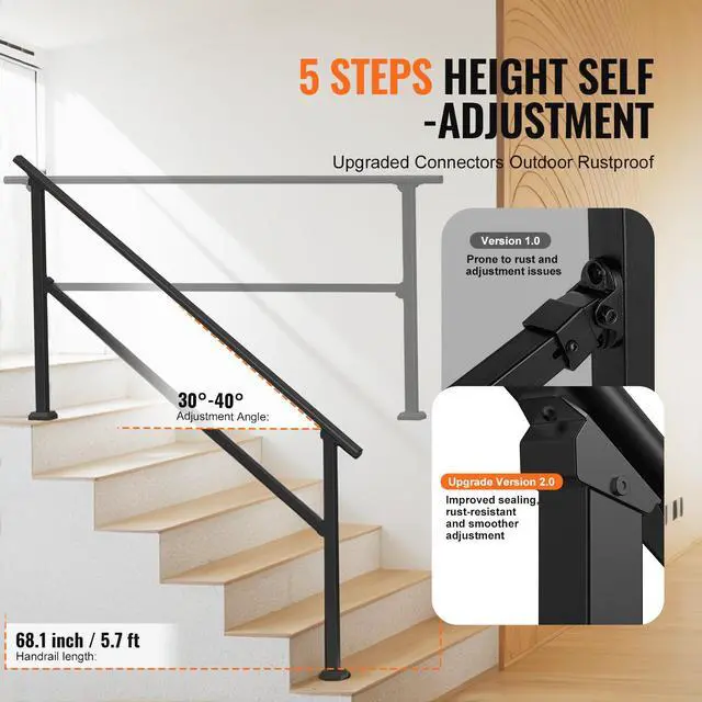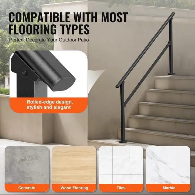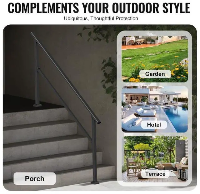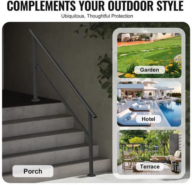 VEVOR 5-6 Handrails for Outdoor for Seniors Porch Deck Black Square Tube Steel