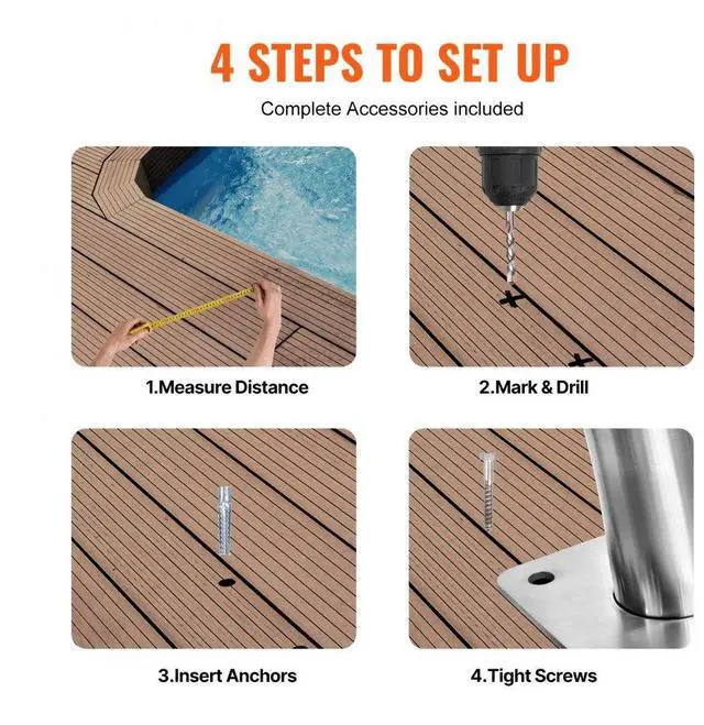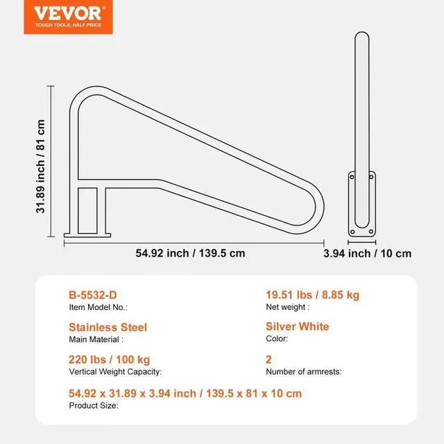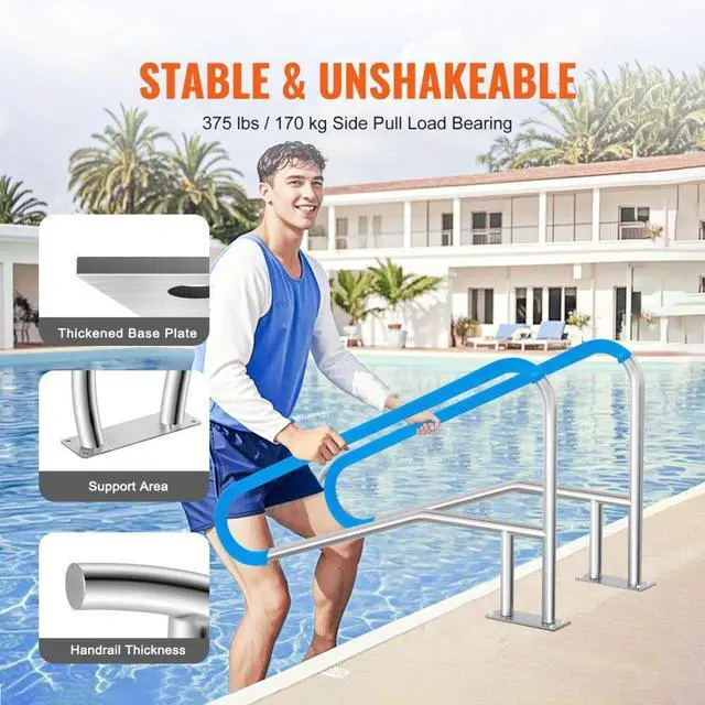 VEVOR Pool Handrail 2 PCS 55 x 32 inch Stainless Steel with Base Plate for Spas