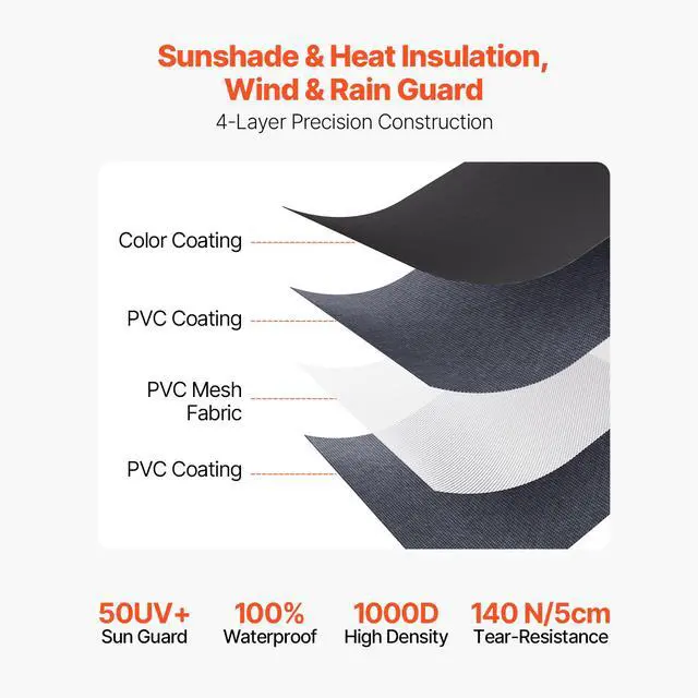 1" to 7' Awning Fabric Replacement Black Slide Topper Awning for RVs