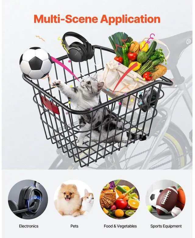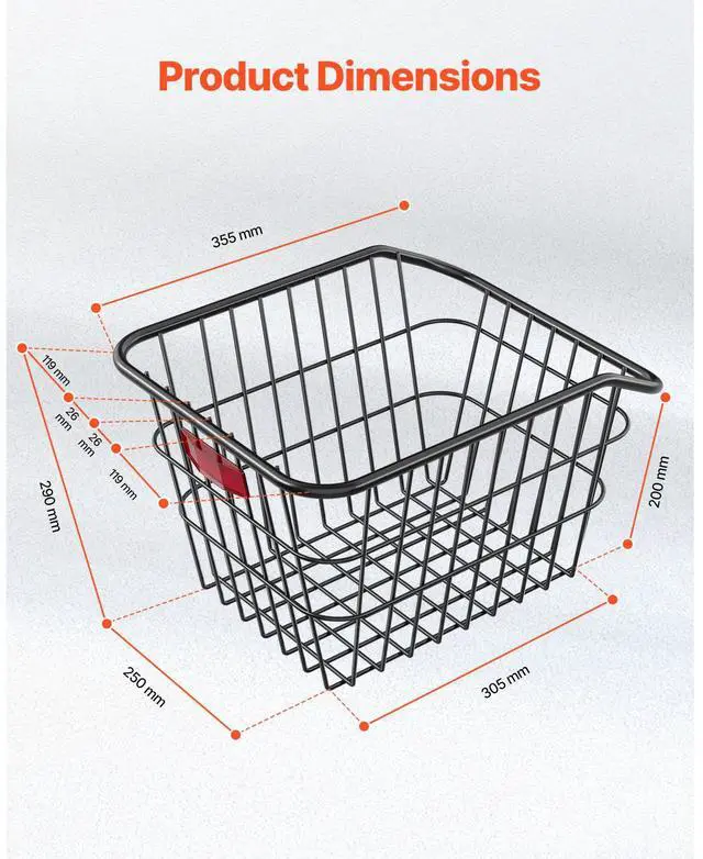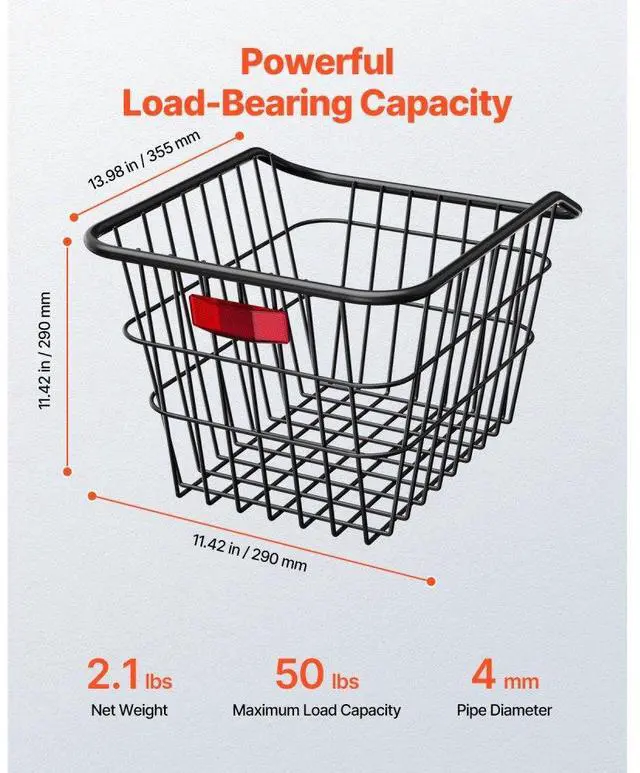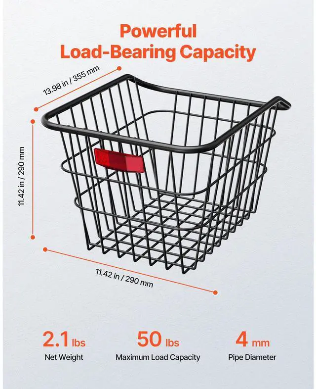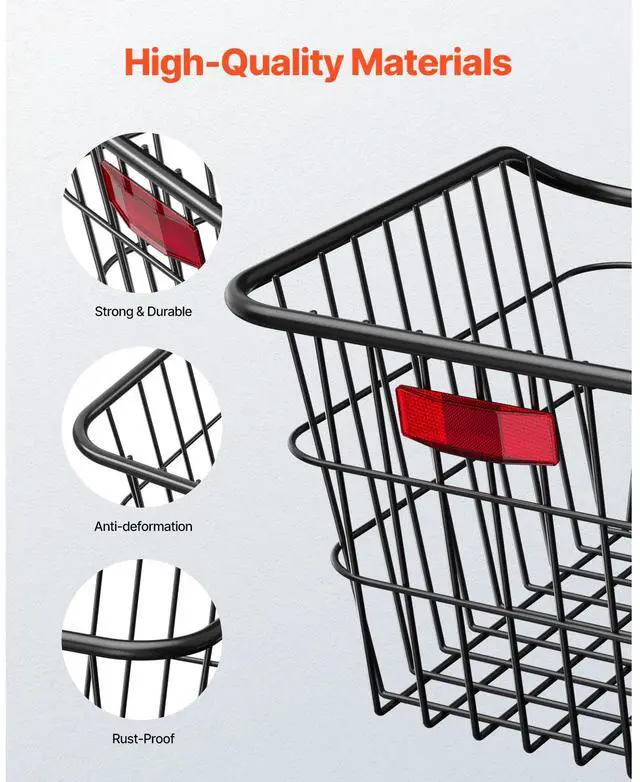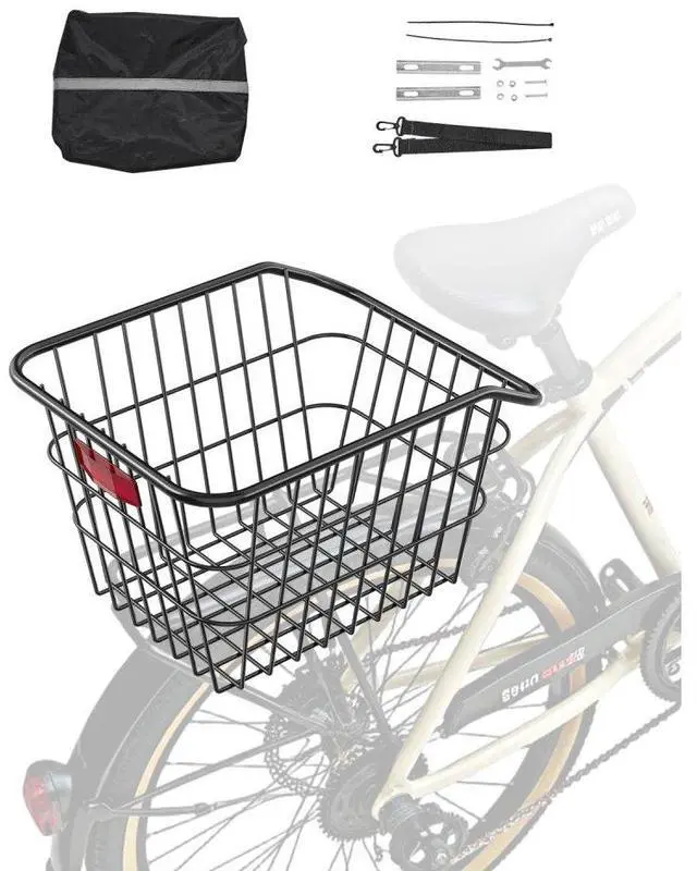 Rear Bike Basket Metal Wire Bicycle Basket Reflective Tail Light Cover