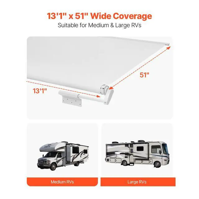 1" to 13' Awning Fabric Replacement White Slide Topper Awning for RVs
