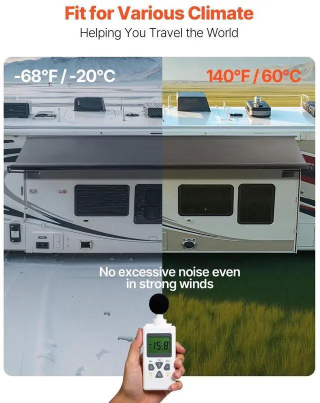1" to 13' Awning Fabric Replacement Black Slide Topper Awning for RVs