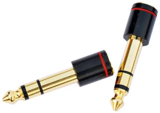 Adaptadores estéreo de 6.35mm a 3.5mm permitem que uma porta estéreo de 6.35mm (1/4 polegadas) aceite um cabo estéreo com um plugue padrão de 3.5mm (1/8 polegadas)