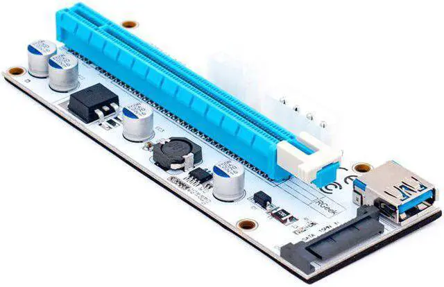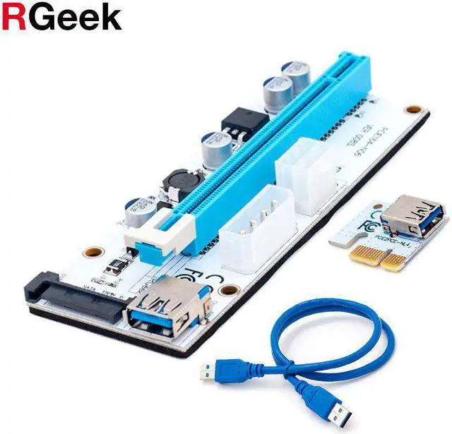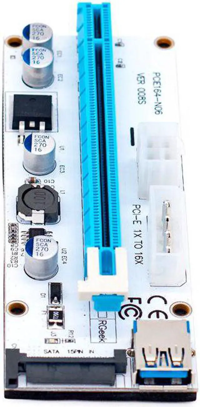 Version 008S riser kits are the est and top of the line solution for setting up GPU mining rigs. 4PIN, SATA and Graphic card 6PIN interface are optional to power, which provides Graphic card independent power and reduces motherboard burden when using more Graphic cards. 4 Solid Capacitors, 60cm USB 3.0 cable, Suitable for all Window systems, LINUX and MAC.