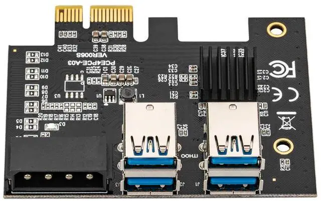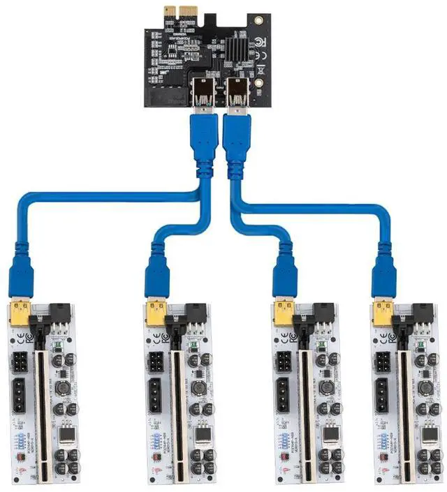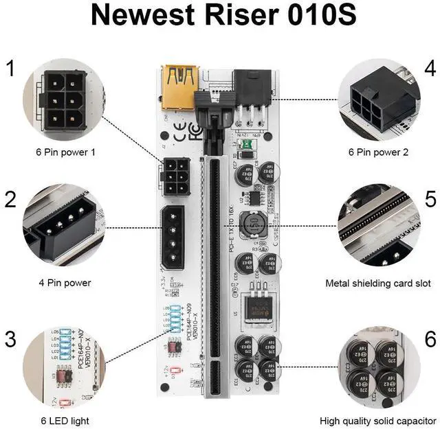 Version 010X riser kits are the est and top of the line solution for setting up GPU mining rigs. 4PIN and Two Graphic card 6PIN interface are optional to power, which provides Graphic card independent power and reduces motherboard burden when using more Graphic cards. LED Display board, 8 Solid Capacitors, 60cm USB 3.0 cable, Suitable for all Window systems, LINUX and MAC.