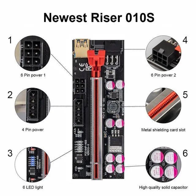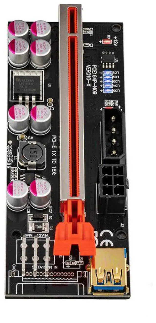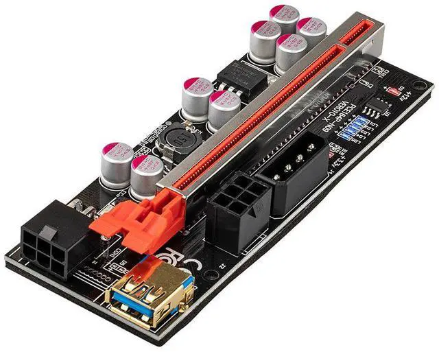 Version 010X riser kits are the est and top of the line solution for setting up GPU mining rigs. 4PIN and Two Graphic card 6PIN interface are optional to power, which provides Graphic card independent power and reduces motherboard burden when using more Graphic cards. LED Display board, 8 Solid Capacitors, 60cm USB 3.0 cable, Suitable for all Window systems, LINUX and MAC.