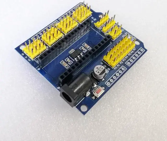 For Arduino Nano IO Expansion Shield is specifically designed to facilitate an easy connection between FOR Arduino Nano and many other devices. In essence, it expands the Nano controller to link those devices in a simple and trouble manner. It is a perfect companion of Nano breadboard and compatible with both Nano v2.x and v3.x.