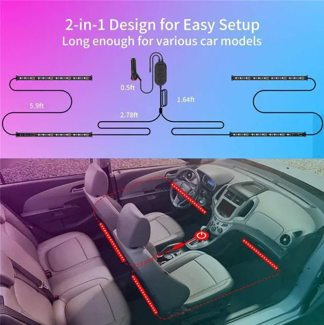 - Come with RGB car LED strip, Infinitely DIY colors over 16 million
