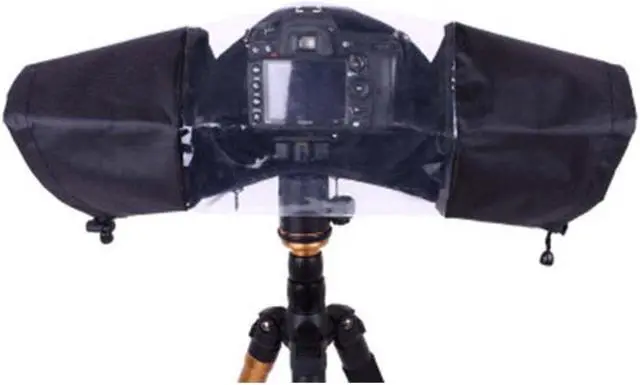2.The cover has drawstring arm protectors, room for your flash and lens and is made from ultra flexible transparent rubber which lets you monitor your camera clearly at all times.