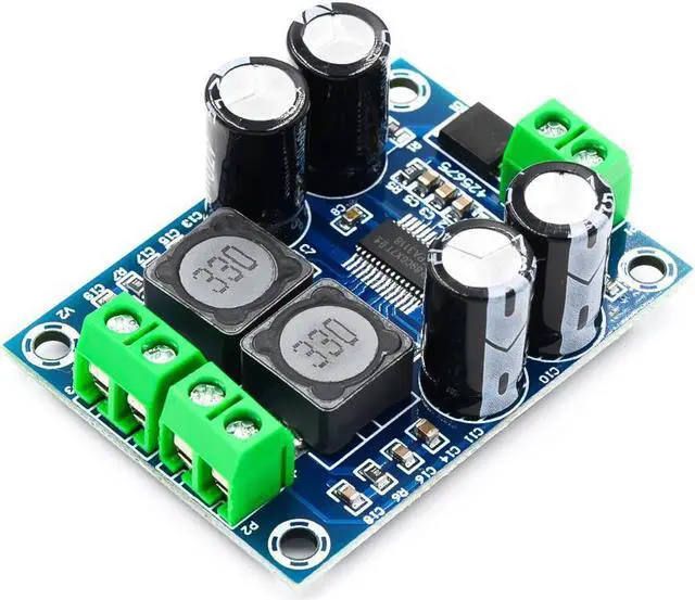 This model uses TI's TPA3118 as the main chip, with a wide power supply range of DC10-24V. In the case of 24V power supply, the load of 2 ohm audio can reach 60W output, and the 60W output is limited to 2 ohms, and the output power of 4 or 6 ohms will drop. , The circuit adopts PBTL mode so it can achieve low resistance and high power, and large internal resistance speakers can be connected in parallel to achieve high power output