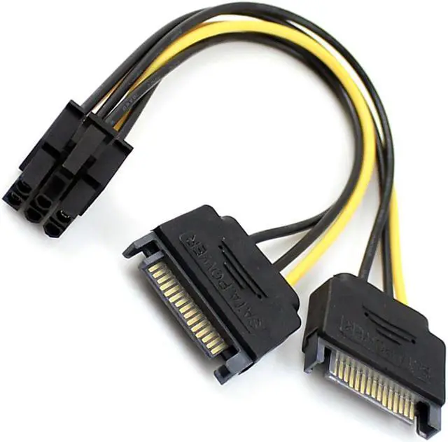 Dual 15 pin Male SATA Power to 6 Pin Female PCIe
