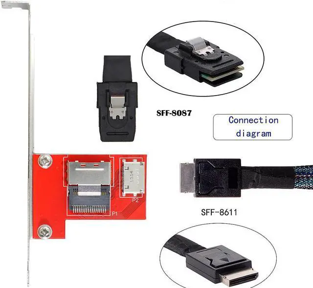PCI-Express 4.0 Mini SAS SFF-8087 to Oculink SFF-8611 SFF-8612 PCBA Female Adapter With Bracket