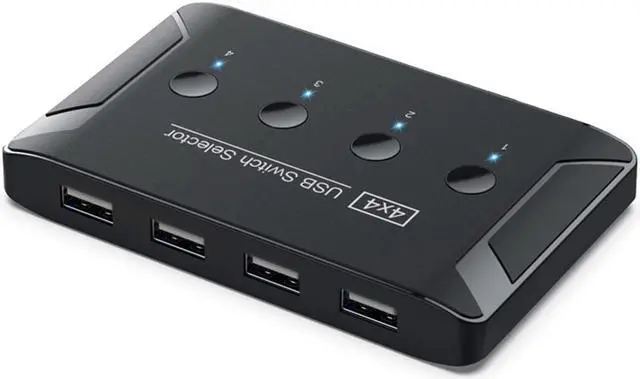 KVM USB 2.0 Switch Selector 4 Port PCs Sharing 4 Devices for Keyboard Mouse Scanner Printer