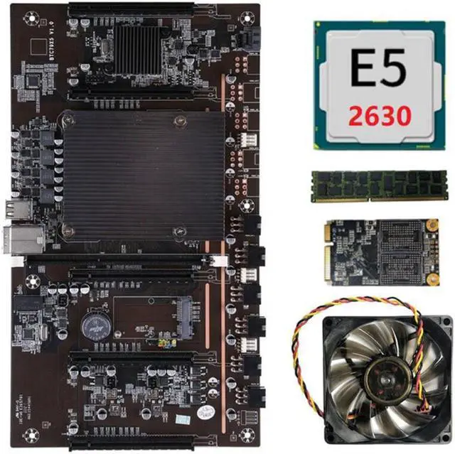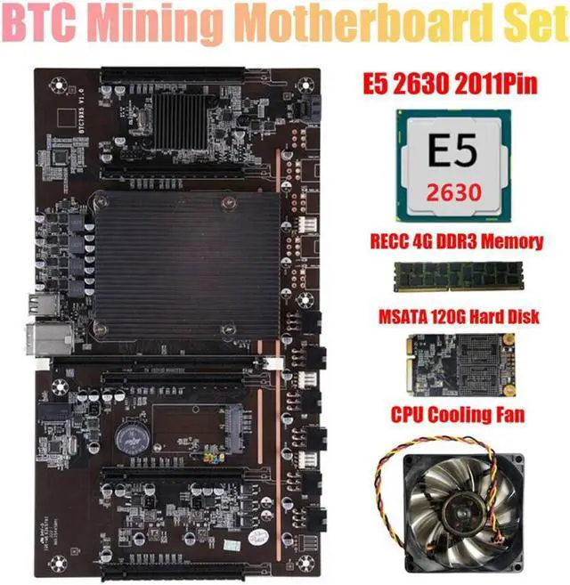 X79 BTC 5 Card Slot Mining Board +E5 2630 2011 Pin CPU+RECC 4GB DDR3 Memory + MSATA 120G Hard Drive+CPU Cooling Fan Kit