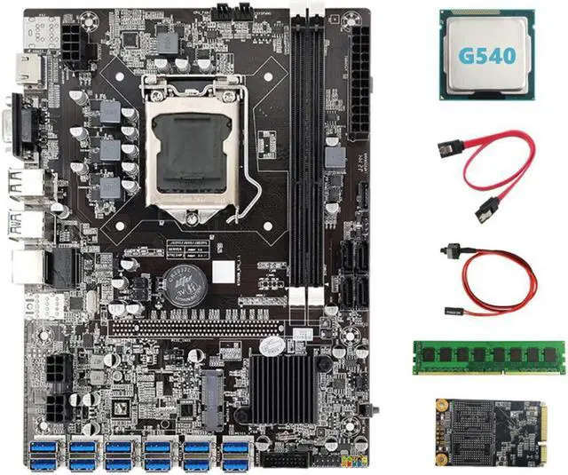 B75 BTC Mining Motherboard 12 PCIE to USB+G540 CPU+DDR3 4GB 1600Mhz RAM+128G SSD+Switch Cable+SATA Cable Motherboard