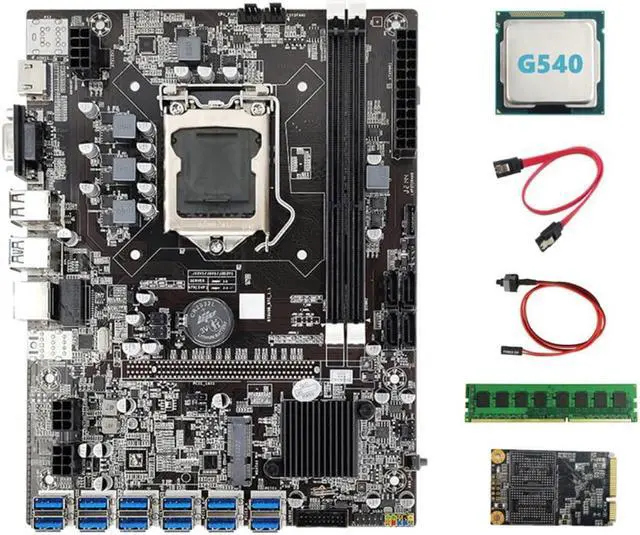 B75 BTC Mining Motherboard 12 PCIE to USB+G530 CPU+DDR3 4GB 1600Mhz RAM+128G SSD+Switch Cable+SATA Cable Motherboard