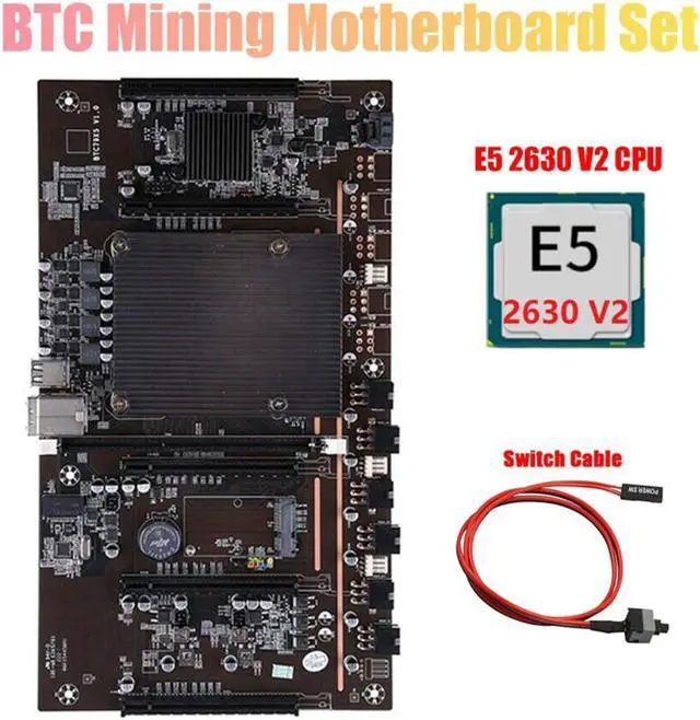 H61 BTCX79 Miner Motherboard with E5 2630 V2 CPU+Switch Cable LGA 2011 DDR3 Support 3060 3070 3080 GPU for BTC Mining