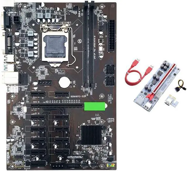 • BTC B250 Mining Motherboard with VER010X PCIE Riser 12XGraphics Card Slot LGA 1151 DDR4 USB3.0 for BTC Miner Mining