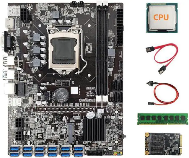 B75 BTC Mining Motherboard 12 PCIE to USB+Random CPU+DDR3 4GB 1600Mhz RAM+128G SSD+Switch Cable+SATA Cable Motherboard