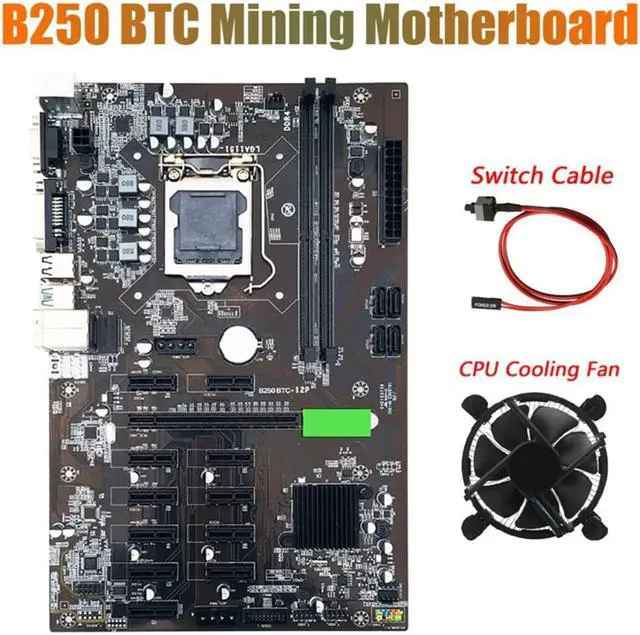 • B250 BTC Mining Motherboard with CPU Cooling Fan+Cable 12XGraphics Card Slot LGA 1151 DDR4 SATA3.0 USB3.0 for BTC Miner