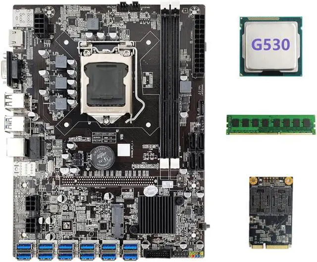 B75 BTC Mining Motherboard 12 PCIE to USB3.0+G530 CPU+DDR3 4GB 1600Mhz RAM+128G MSATA SSD B75 USB Miner Motherboard