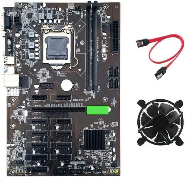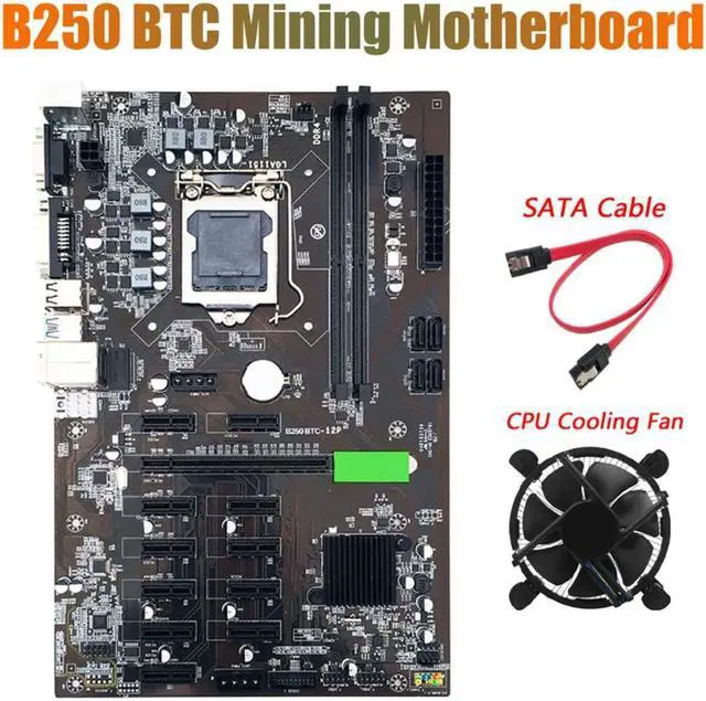 B250 BTC Mining Motherboard with CPU Cooling Fan+SATA Cable 12XGraphics Card Slot LGA 1151 DDR4 SATA3.0 for BTC Miner