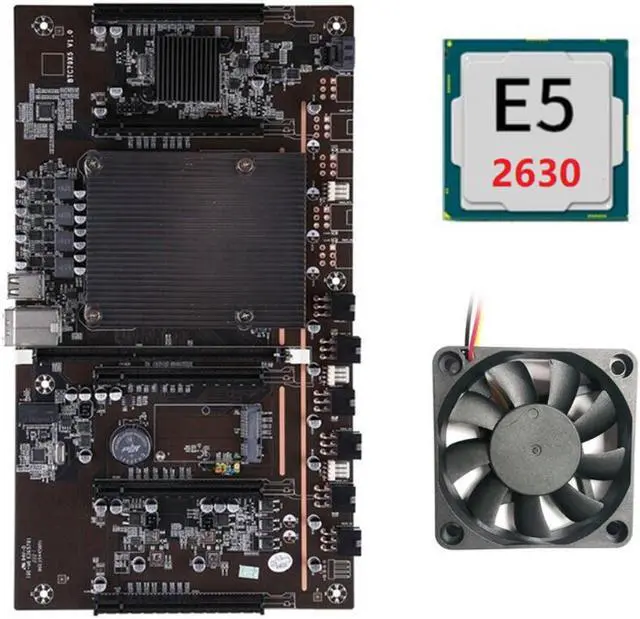 X79 BTC 5 card slot mining board+E5 2630 2011 Pin CPU+Cooling Fan