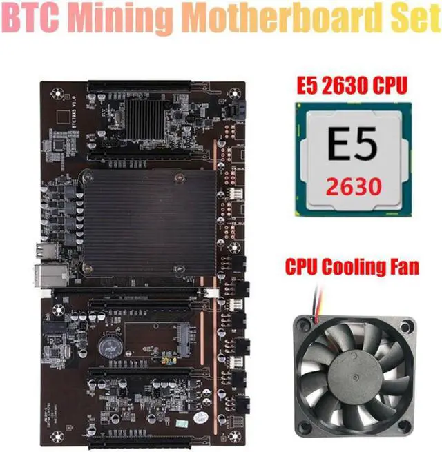 X79 BTC 5 card slot mining board+E5 2630 2011 Pin CPU+Cooling Fan