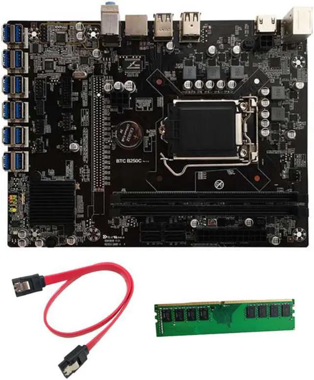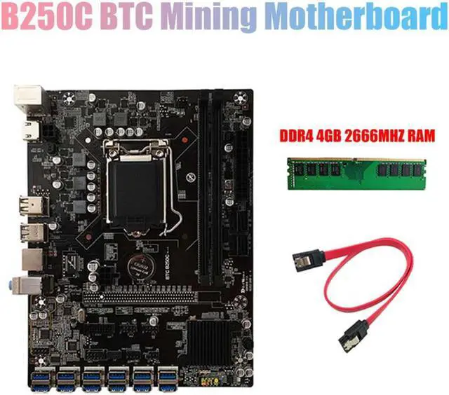 B250C BTC Mining Motherboard+DDR4 4G 2666MHZ Memory 12XPCIE to USB3.0 Graphics Card Slot LGA1151 Computer Motherboard