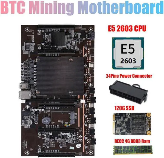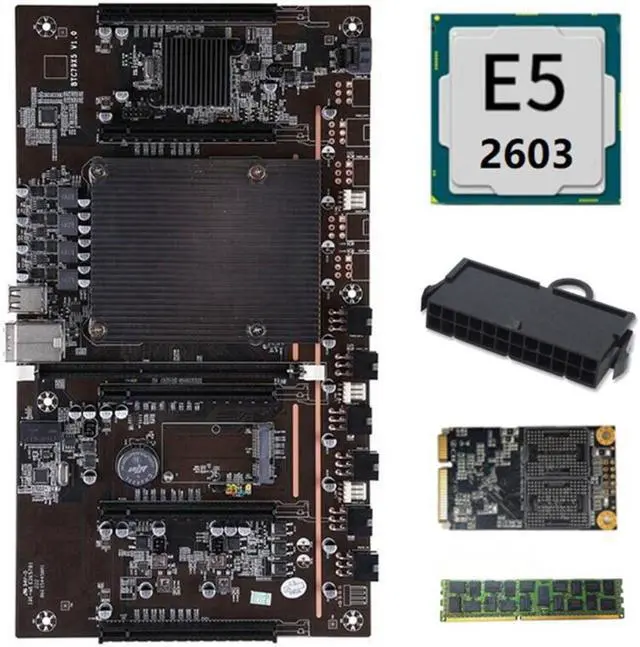 X79 H61 BTC Miner Motherboard with E5 2603 CPU+RECC 4G DDR3 Ram+120G SSD+24 Pins Connector Support 3060 3070 3080 GPU