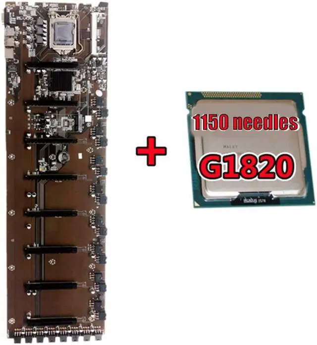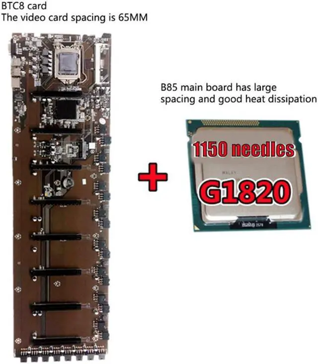 B85 BTC Mining Motherboard with G1820 CPU LGA1155 Support DDR3 8PCI-E 65mm Large Spacing Graphics Card Slot