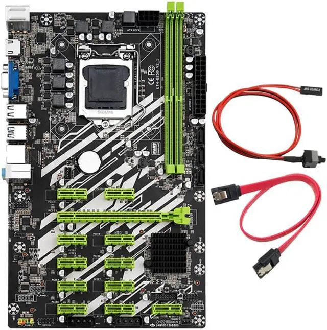B250 BTC Mining Motherboard with Switch Cable+SATA Cable 12 PCI-E Slots LGA1151 DDR4 RAM SATA3.0 USB3.0 Support VGA+HD