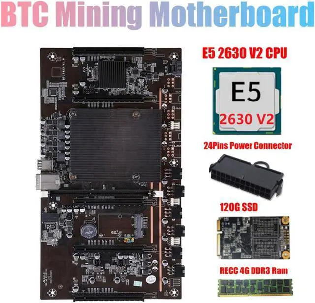 X79 BTC 5 Card Slot Mining Board with E5 2630 V2 2011Pin CPU+24PIN Power Connector+RECC 4G DDR3 Memory+120G MSATA SSD