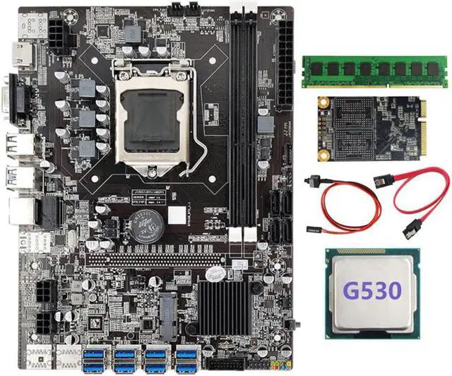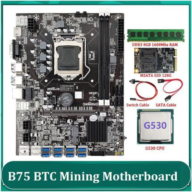 B75 BTC Mining Motherboard+G530 CPU+SATA Cable+Switch Cable+MSATA SSD 128G+DDR3 8GB 1600Mhz RAM LGA1155 8XPCIE USB Miner