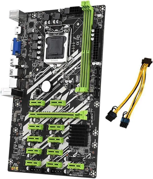 B250 Mining Motherboard with Power Cable 12 PCI-E Slots LGA1151 DDR4 RAM SATA3.0 USB3.0 Support VGA+HD for Bitcoin Miner