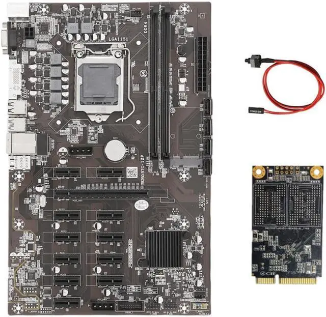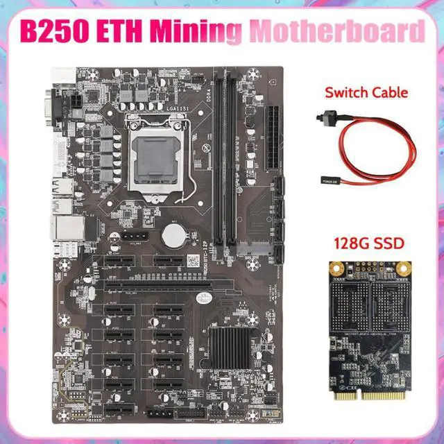 B250B ETH Mining Motherboard+128G MSATA SSD+Switch Cable LGA1151 DDR4 12Xgraphics Card Slot SATA3.0 USB3.0 For BTC Miner