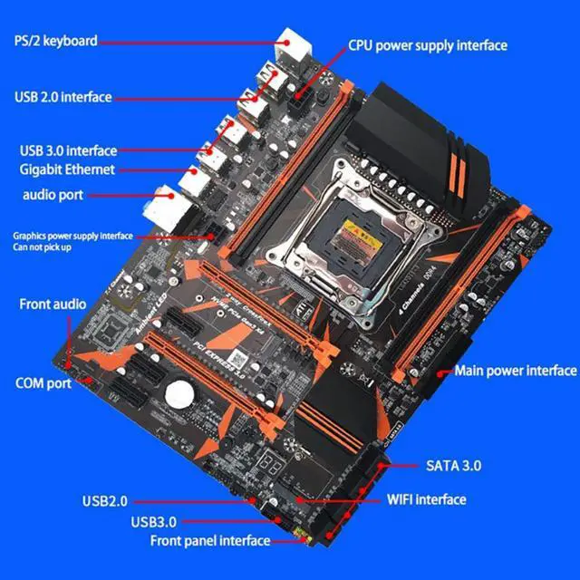 1. X99 D4 luxury motherboard, LGA2011-3 CPU slot supports 4xDDR4 REG ECC or ordinary desktop memory, complete interfaces, high temperature resistance, stable power supply.