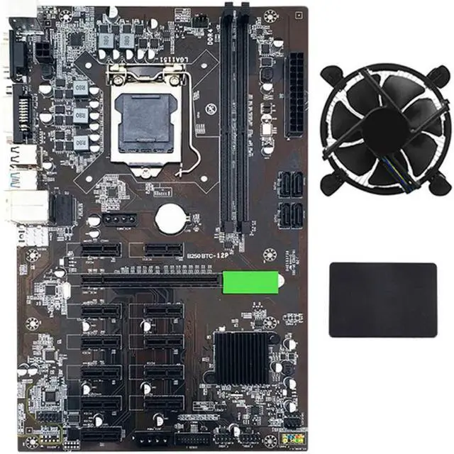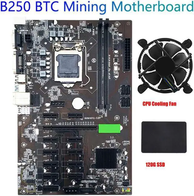 B250 BTC Mining Machine Motherboard 12 PCIE 16X Graph Card LGA1151 with SATA SSD120G+Cooling Fan Support DDR4 VGA