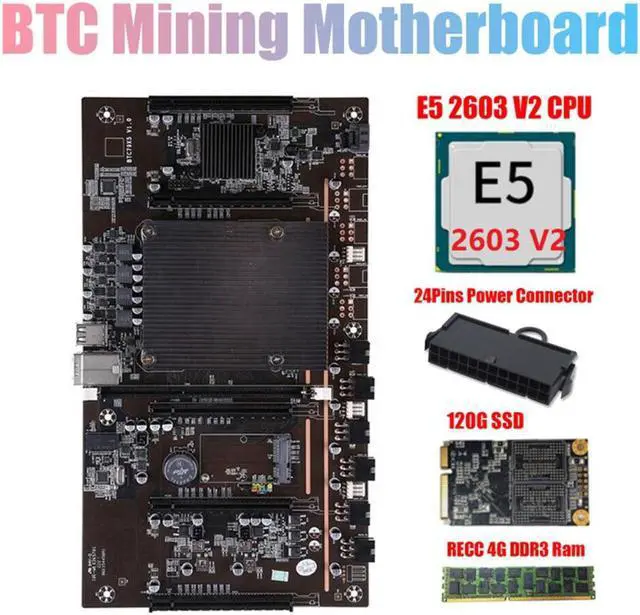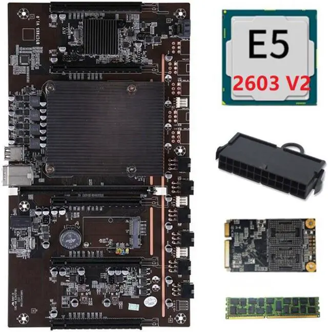X79 BTC 5 Card Slot Mining Board with E5 2603 V2 2011Pin CPU+24PIN Power Connector+RECC 4G DDR3 Memory+120G MSATA SSD