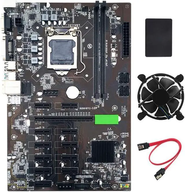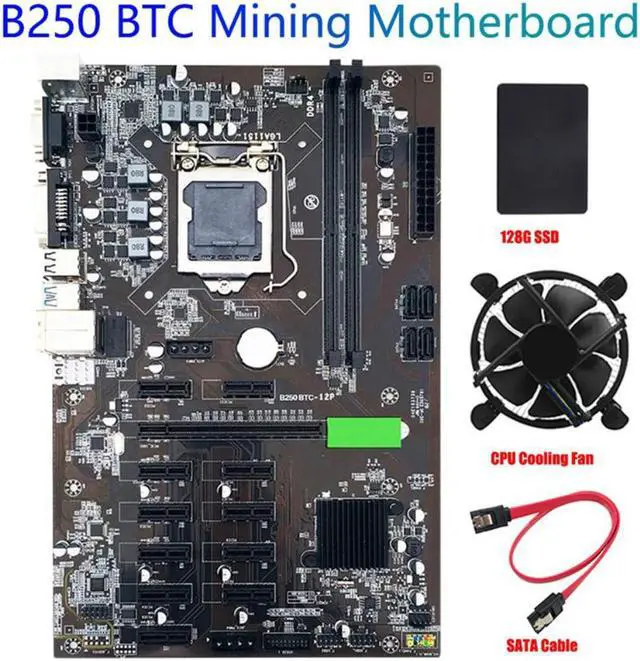 B250 BTC Mining Motherboard 12 PCIE 16X Graph Card LGA1151 with SATA SSD 128G+Cooling Fan +SATA Cable Support DDR4 VGA