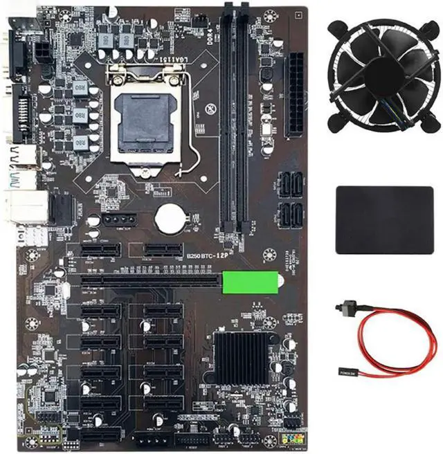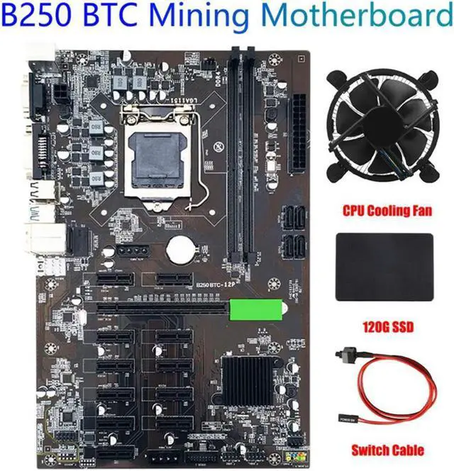 B250 BTC Mining Motherboard USB3.0 SATA 3.0 LGA1151 with SATA SSD120G+Cooling Fan+Switch Cable Support DDR4 for Miner