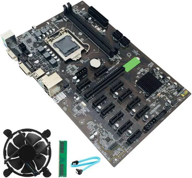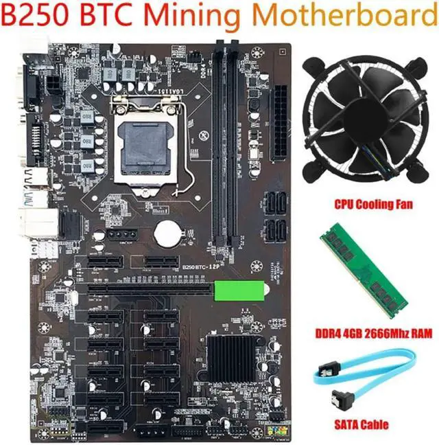 B250 BTC Mining Motherboard LGA 1151 with DDR4 4GB 2666MHZ RAM+Cooling Fan+SATA Cable 12 GPU Bitcoin Etherum Motherboard