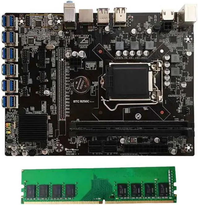B250 BTC Mining Machine Motherboard 12 Pcie to USB3.0 Graphics Slot LGA 1151 DDR4 Memory Motherboard with 8G DDR4 Memory