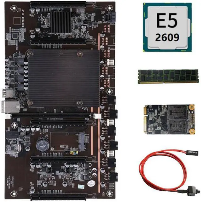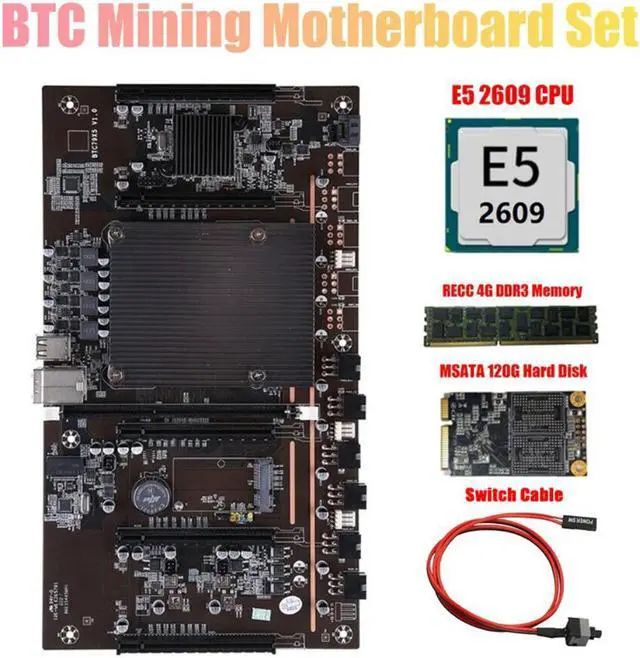 X79 BTC 5 Card Slot Mining Board with E5 2609 2011Pin CPU+Switch Cable+RECC 4G DDR3 Memory+120G MSATA SSD