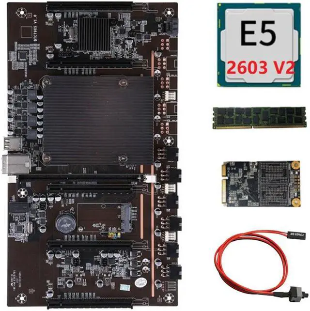 X79 BTC 5 Card Slot Mining Board with E5 2603 V2 2011Pin CPU+Switch Cable+RECC 4G DDR3 Memory+120G MSATA SSD