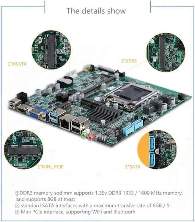 2. Memory: 1*DDR3 SO-DIMM slot only supports 1.35V DDR3 1333/1600 MHz memory, maximum support 8GB