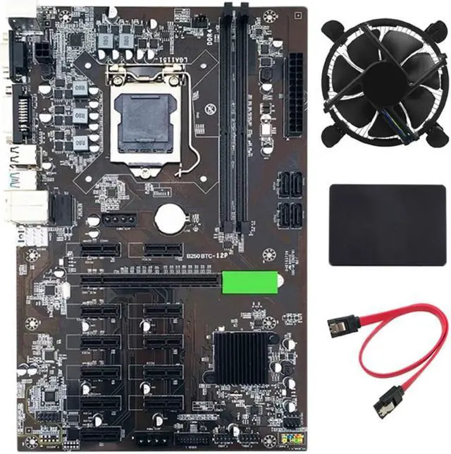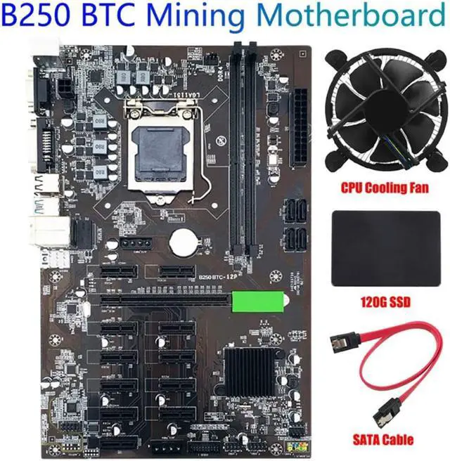 B250 BTC Mining Machine Motherboard USB3.0 SATA 3.0 LGA1151 with SATA SSD 120G+Cooling Fan+SATA Cable+Support DDR4 VGA