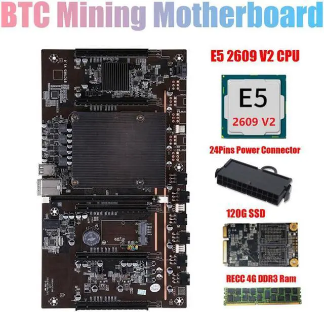H61 X79 BTC Mining Motherboard with E5 2609 V2 CPU+RECC 4G DDR3 Ram+24Pins Connector+120G SSD Support 3060 3070 3080 GPU